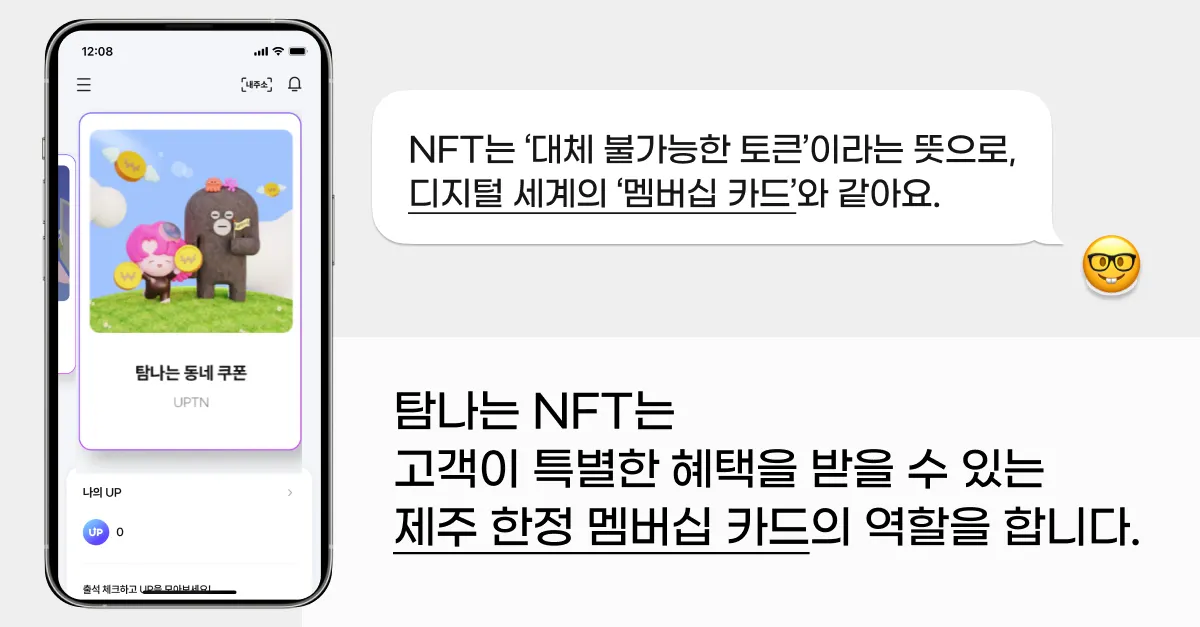 탐나는 NFT는 제주 소상공인을 지원하고, 제주 경제 활성화를 위해 발행된 디지털 자산입니다.